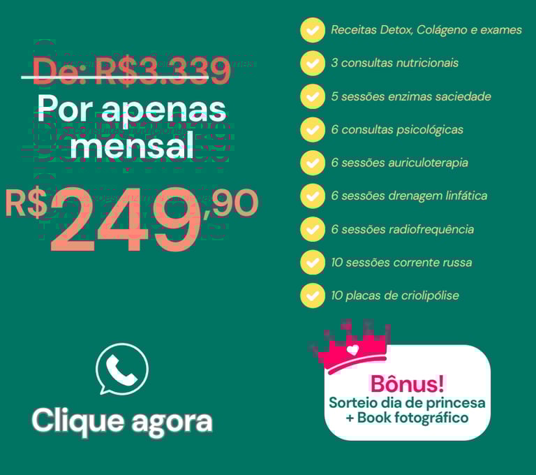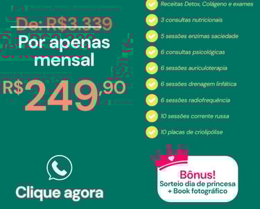 Eliminação rápida de peso com equipamento de alta tecnologia, planejamento nutricional para acelerar o metabolismo e sessão terapêutica para controle de ansiedade